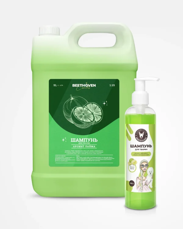 Шампунь “Лайм” підходить для шерсті, яка швидко забруднюється. Допомагає у боротьбі проти лупи, сприяє росту шерсті та покращує її природній блиск. Також шампунь заспокоює шкіру тварини.